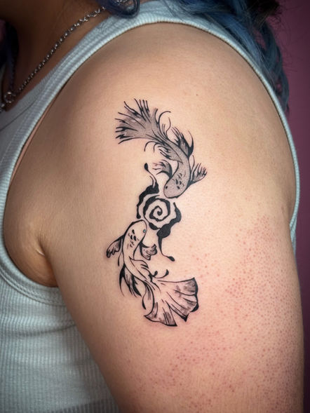 Hi, I'm Celine, also known as Bean, and go by she/her. I'm a mom to a cute toasted Siamese cat and my favorite thing to do outside of tattooing is dancing, both in sneakers and heels choreography. I also enjoy tarot, astrology, YouTube, thrifting, the beach, tea and coffee.
