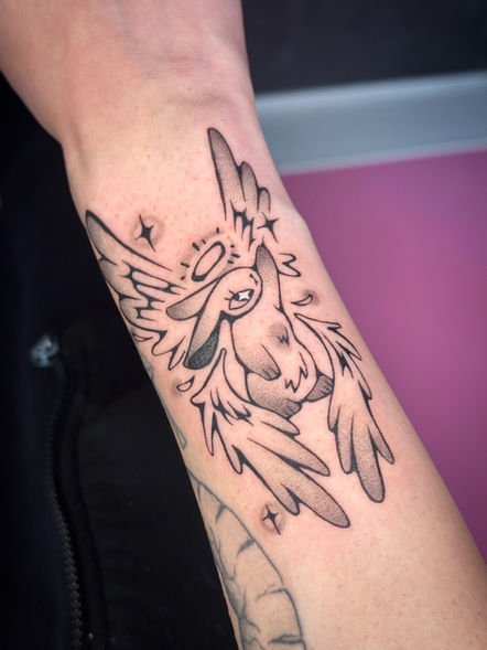 I'd describe my style as cute, weird and magical in black and gray but am also inspired by bold, abstract or colorful work! I'd love to work with you and your ideas so feel free to reach out :)