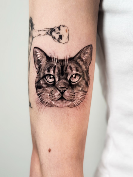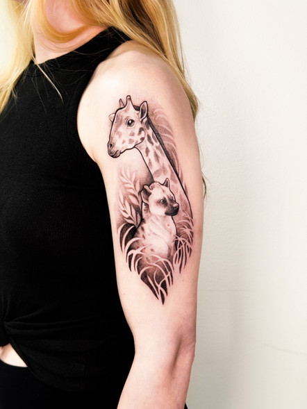 My tattoo style specializes in black and grey animal, pet portrait, fantasy, and gothic artwork. I love to create work that has whimsical undertones to it, and most of my artwork has been focused on bringing a fantastical element to the natural world.